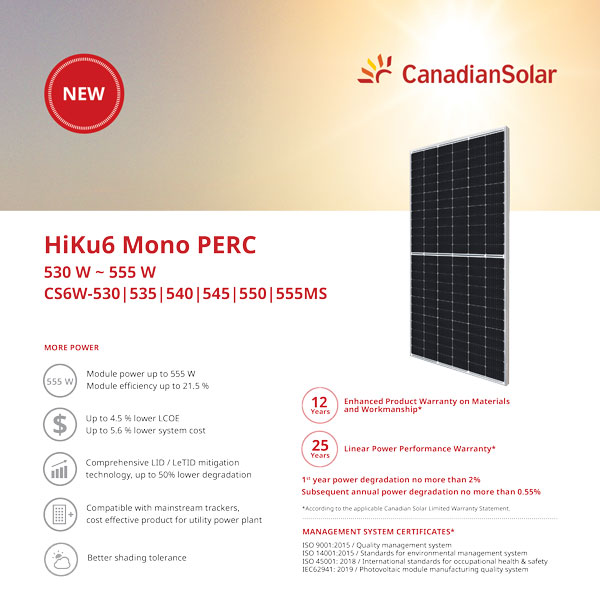 Giới Thiệu Tấm Pin Năng Lượng Mặt Trời Canadian CS6W-555MS